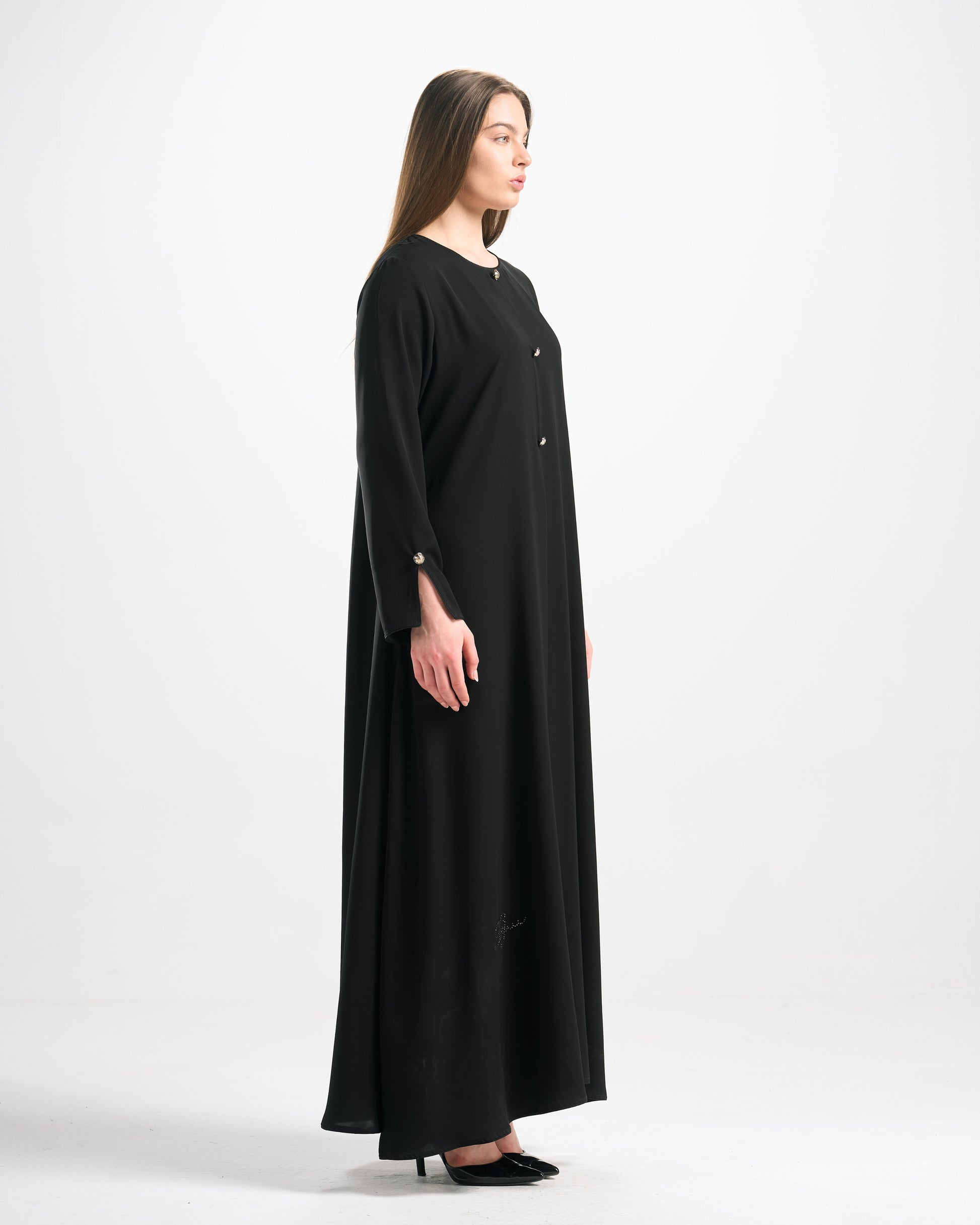 عباية ندي بسيطة بقصة مريحة مناسبة للارتداء اليومي. مصنوعة من قماش الندى الفاخر.